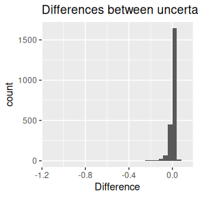Below are calculated values of the uncertainty of mass in two approaches and the difference between them for the example peptide.
